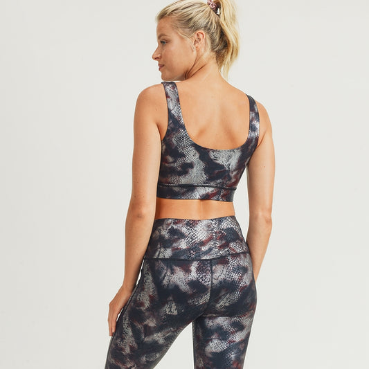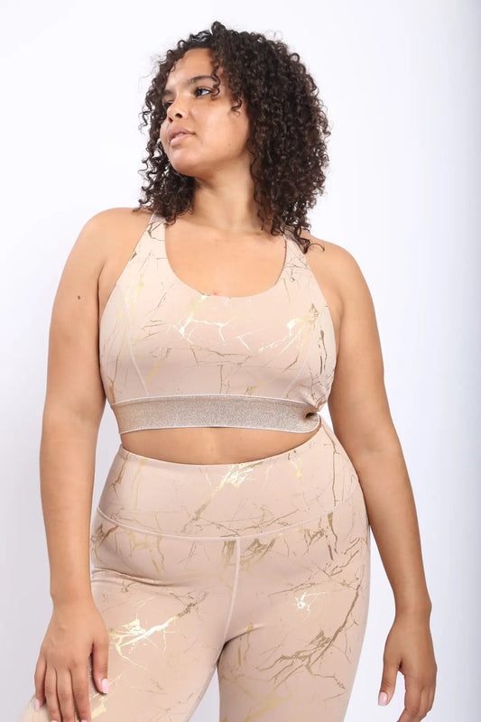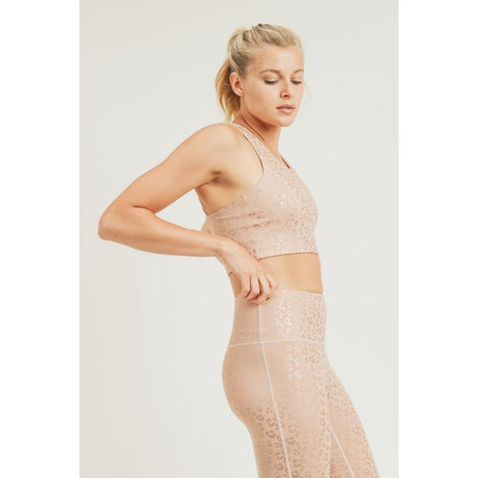 Peach Leopard Foil Print Overlay Twist Sports Bra