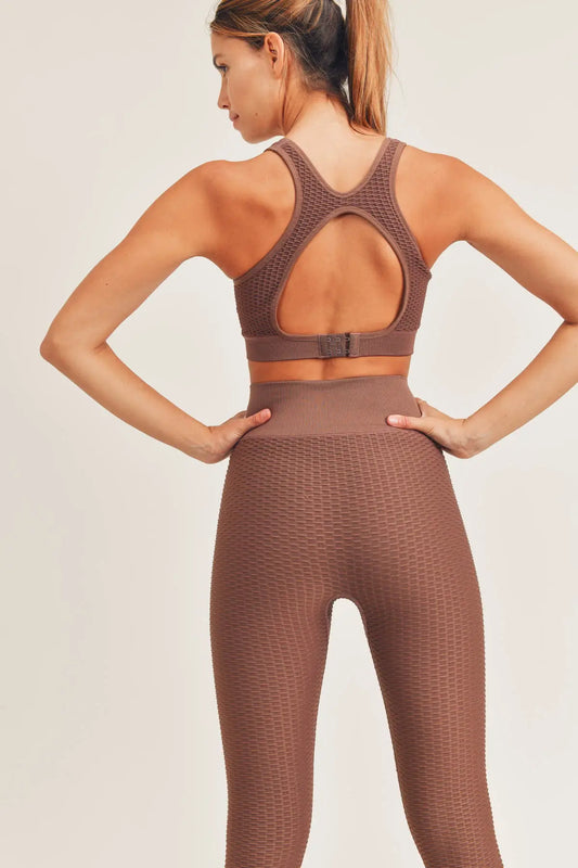 Jacquard & Ribbed Cut-Out Back Seamless Sports Bra