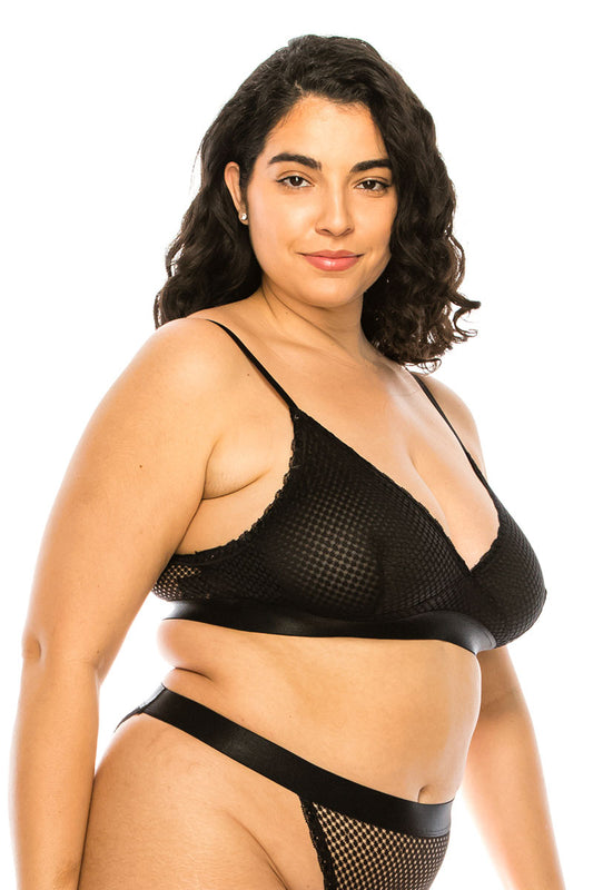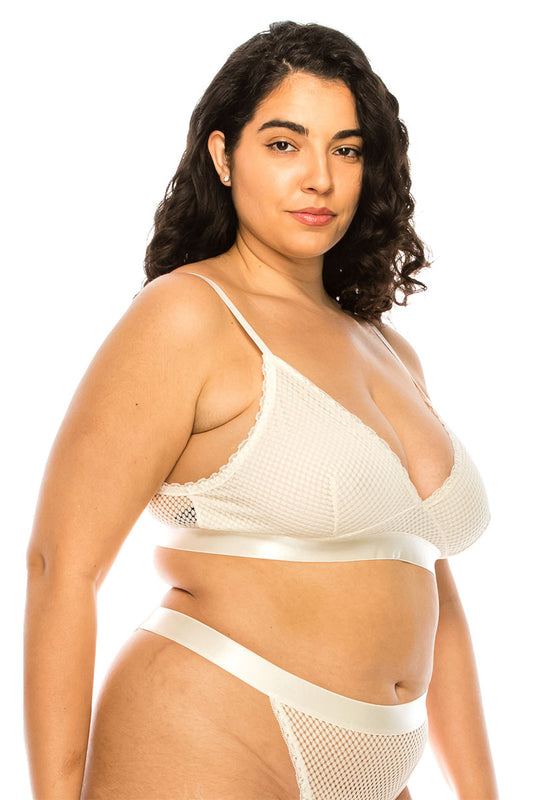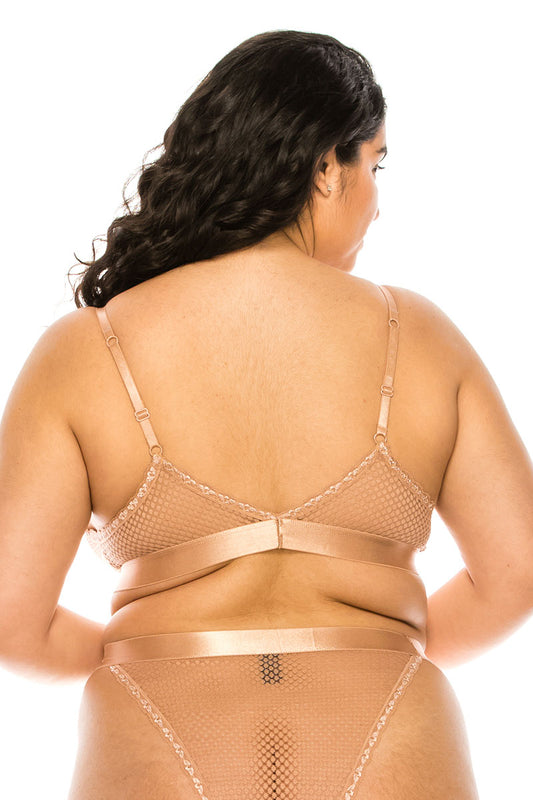 Toasted Almond 3 Piece Wide Strappy Detailing Mesh Bra Set